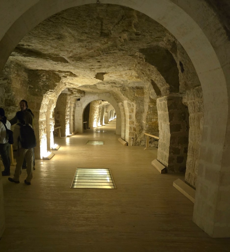 To lower them into the vault, the floor was first packed with sand. The sand was then dug out from beneath, lowering the sarcophagus gradually until setting it onto the stone floor. (Almost all of these sarcophaguses made it to its final destination – all except one that was just left in the tunnels, for unknown reasons.)